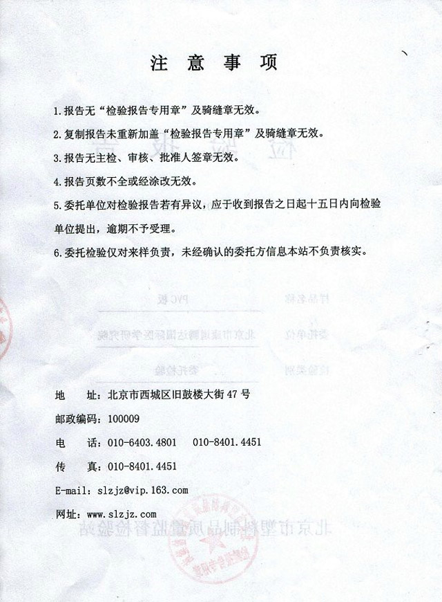 PVC板消防检测报告